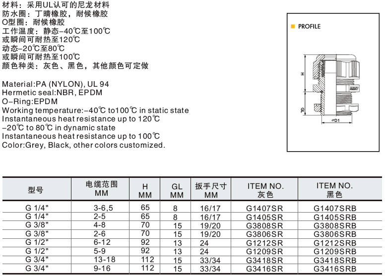 塑料電纜固定頭 >> G型電纜固定頭-G-TYPE-NYLON-CABLE-GLANDS