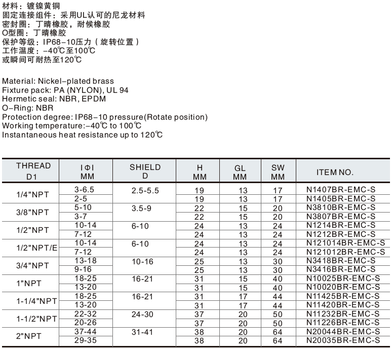 金屬電纜固定頭 >> NPT型屏蔽金屬電纜固定頭-S型-NPT-EMC-METAL-CABLE-GLAND-S-TYPE