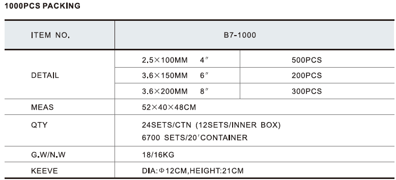 包裝款式B系列 1000PCS PACKING
