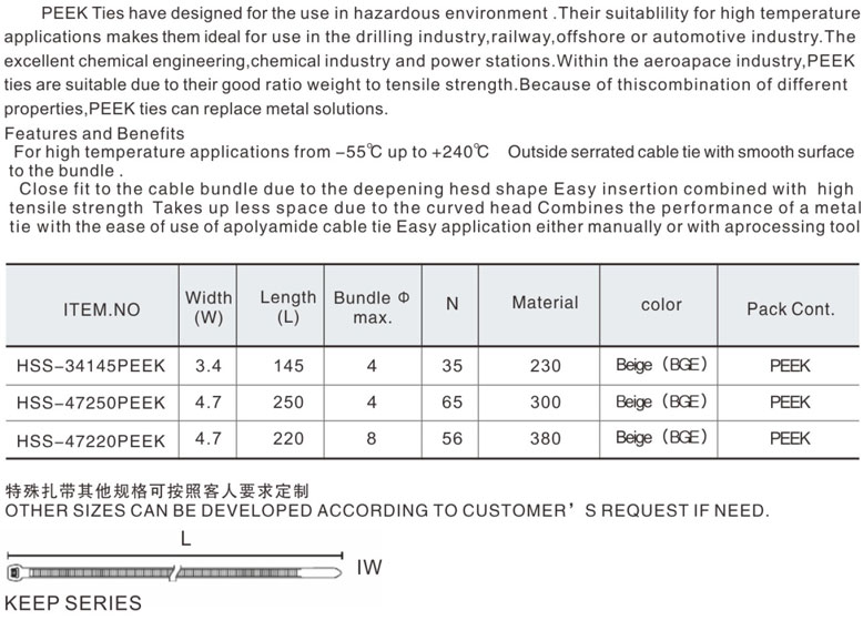 特殊定制扎帶系列 >> 聚醚醚酮扎帶